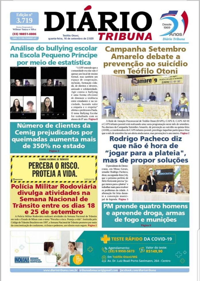 Diário Tribuna, 16 de Setembro 2020, Teófilo Otoni – MG