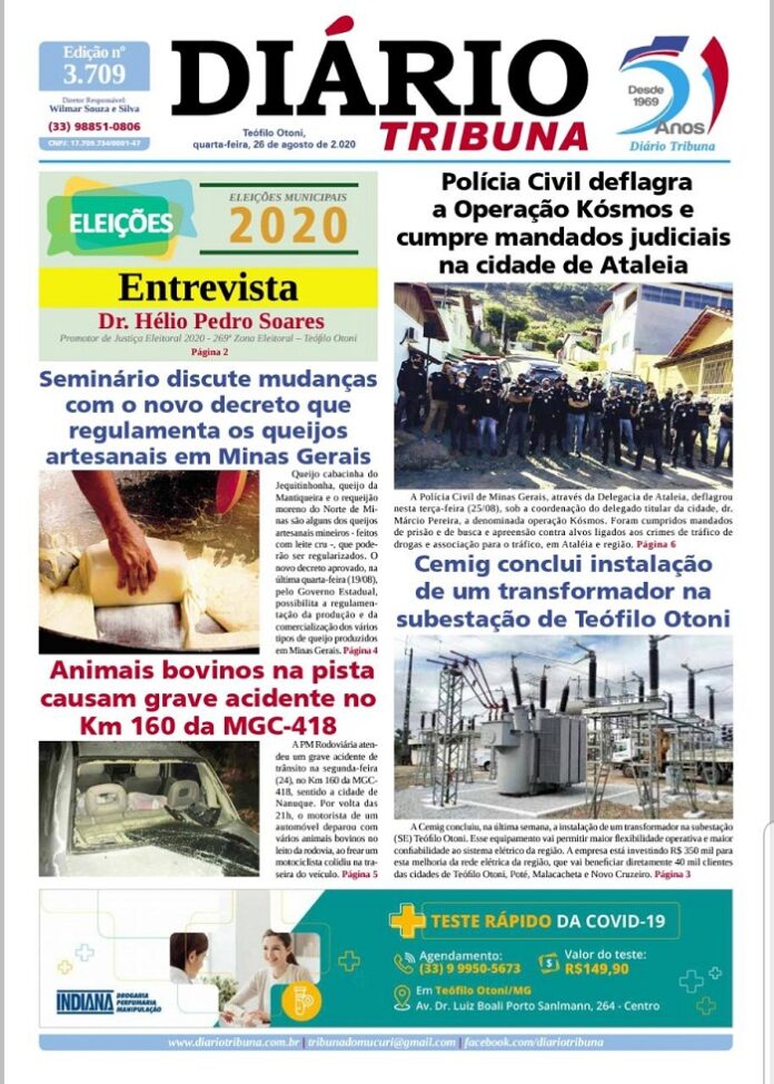 Diário Tribuna, 26 de Agosto 2020, Teófilo Otoni – MG