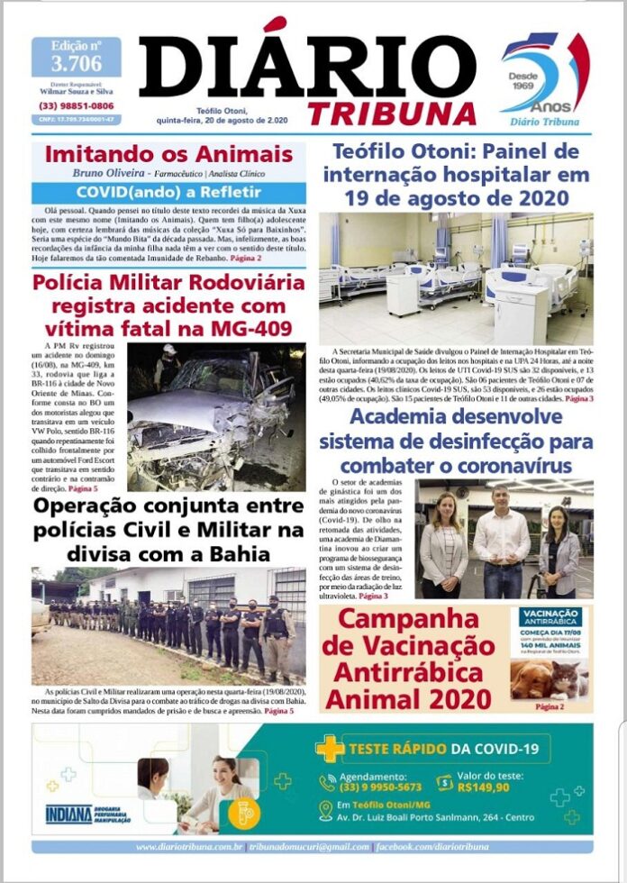 Diário Tribuna, 20 de Agosto 2020, Teófilo Otoni – MG