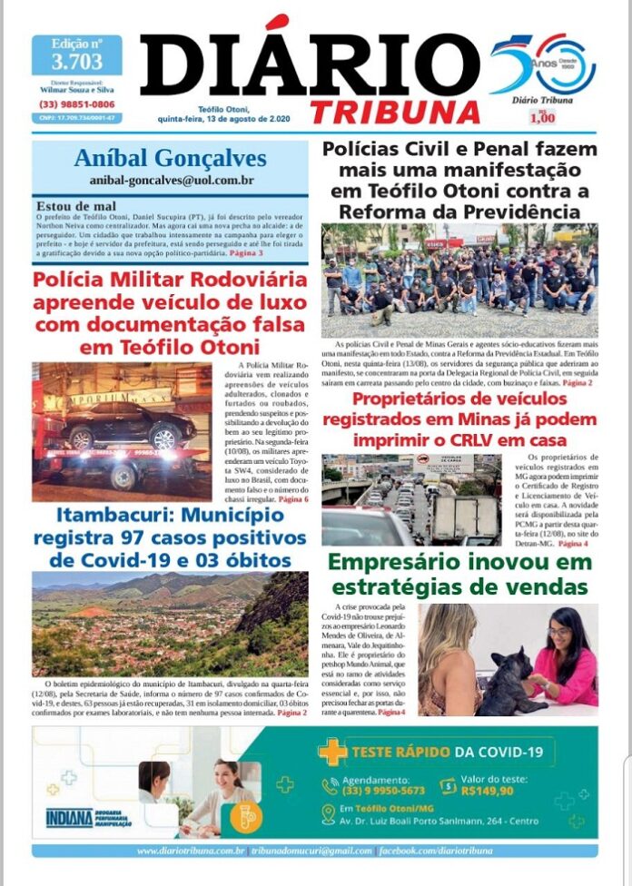Diário Tribuna, 13 de Agosto 2020, Teófilo Otoni – MG