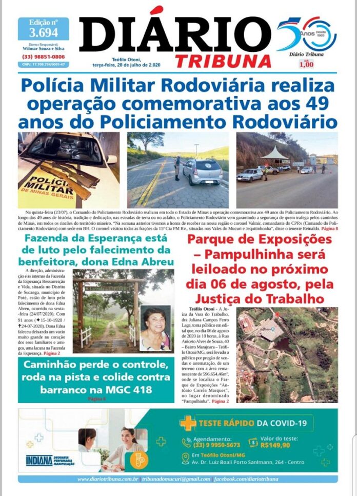 Diário Tribuna, 28 de Julho 2020, Teófilo Otoni – MG