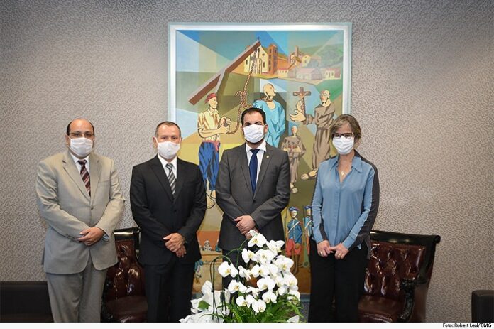 O presidente do TJMG, Gilson Lemes, com a superintendente de Equidade, desembargadora Maria Inês, o desembargador Júlio César Gutierrez e o magistrado de Juiz de Fora, Evaldo Elias Penna Gavazza