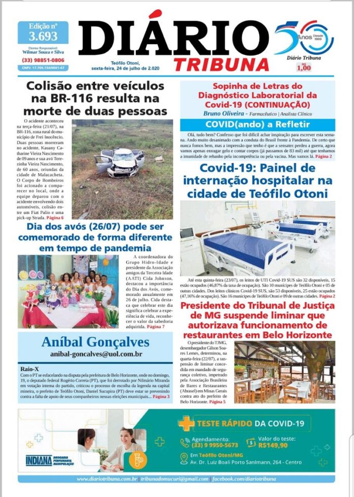 Diário Tribuna, 24 de Julho 2020, Teófilo Otoni – MG