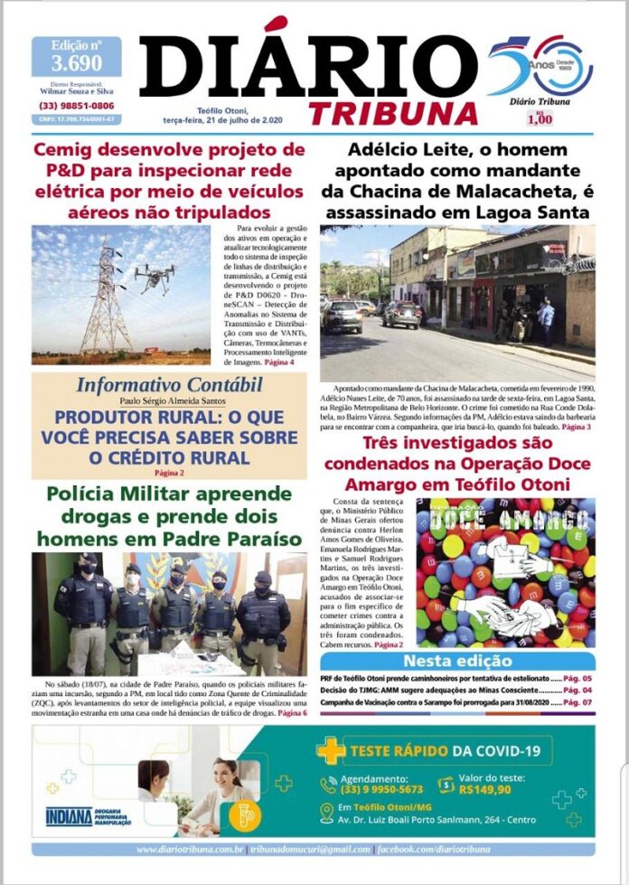 Diário Tribuna, 21 de Julho 2020, Teófilo Otoni – Minas Gerais