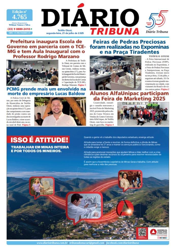 Diário Tribuna, 21 de Julho de 2025, Teófilo Otoni – MG