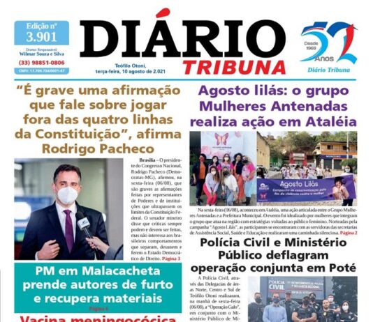 Diário Tribuna, 10 de Agosto 2021, Teófilo Otoni – MG