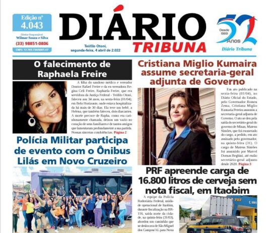 Diário Tribuna, 4 de Abril 2022, Teófilo Otoni – MG