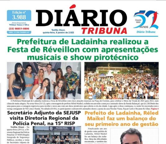 Diário Tribuna, 06 de Janeiro 2022, Teófilo Otoni – MG