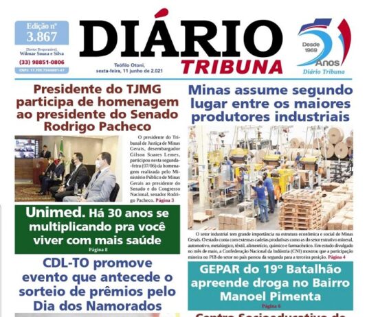 Diário Tribuna, 11 de Junho 2021, Teófilo Otoni – MG