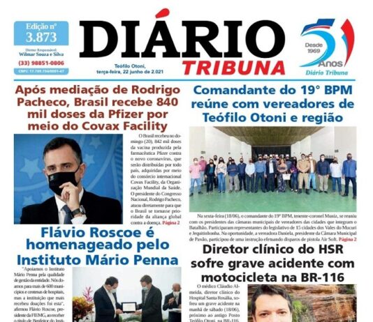 Diário Tribuna, 22 de Junho 2021, Teófilo Otoni – MG