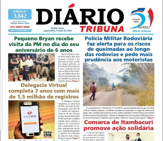 Diário Tribuna, 05 de Maio 2021, Teófilo Otoni – MG