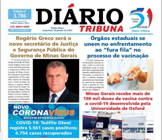 Diário Tribuna, 26 de Janeiro 2021, Teófilo Otoni/MG