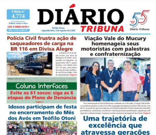 Diário Tribuna, 4 de Agosto de 2025, Teófilo Otoni – MG