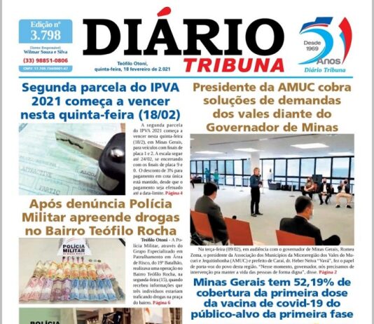 Diário Tribuna, 18 de Fevereiro 2021, Teófilo Otoni/MG