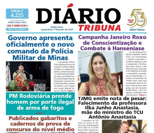 Diário Tribuna, 1º de Fevereiro 2023, Teófilo Otoni – MG