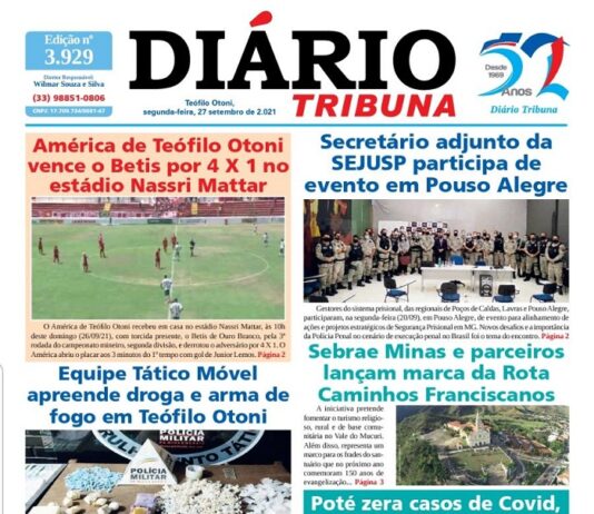 Diário Tribuna, 27 de Setembro 2021, Teófilo Otoni – MG