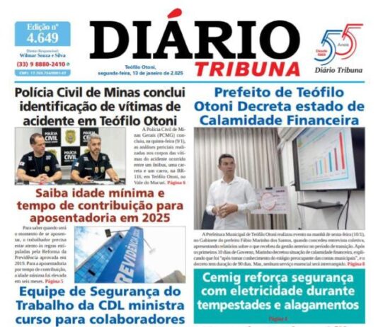 Diário Tribuna, 13 de Janeiro de 2025, Teófilo Otoni – MG