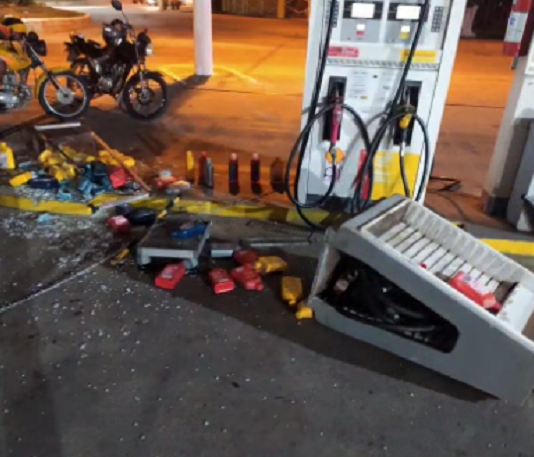 Condutor provoca acidente dentro de posto de combustível e foge do local