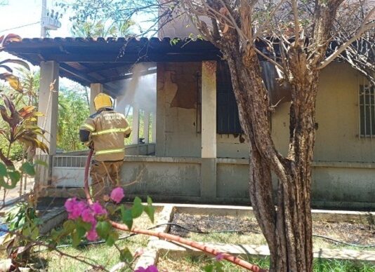 Bombeiros debelam incêndio em uma residência na zona rural de Araçuaí