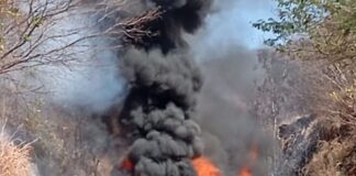 Carreta tomba e pega fogo na LMG 342 em Coronel Murta