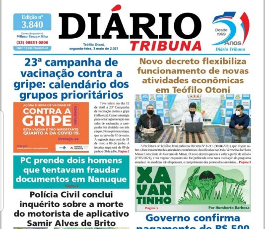 Diário Tribuna, 03 de Maio 2021, Teófilo Otoni – MG