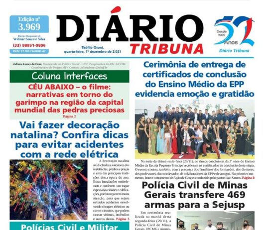 Diário Tribuna, 01 de Dezembro 2021, Teófilo Otoni – MG