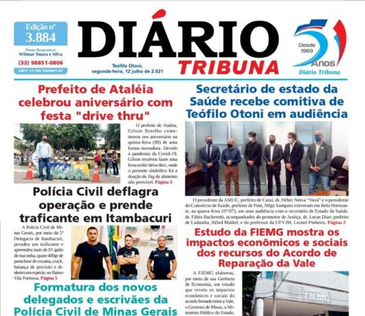 Diário Tribuna, 12 de Julho 2021, Teófilo Otoni – MG