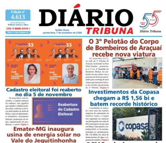 Diário Tribuna, 7 de Novembro de 2024, Teófilo Otoni – MG