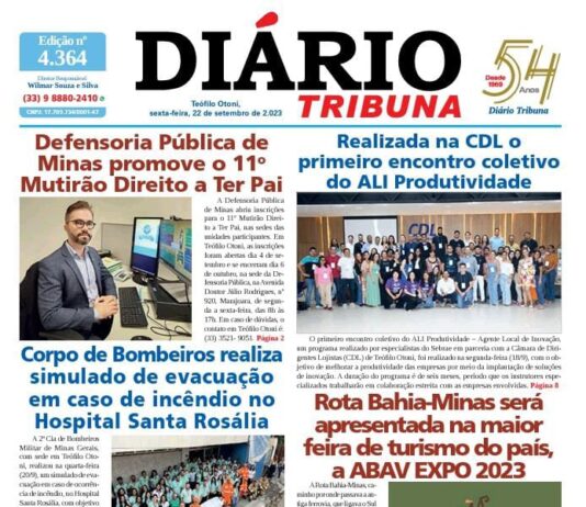 Diário Tribuna, 22 de Setembro 2023, Teófilo Otoni – MG