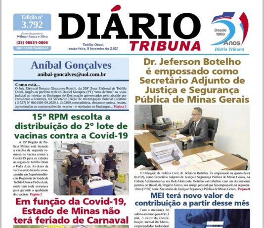 Diário Tribuna, 5 de Fevereiro 2021, Teófilo Otoni/MG