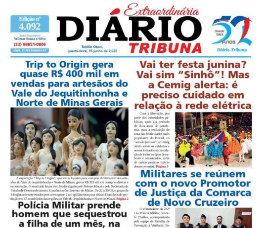 Diário Tribuna, 15 de Junho 2022, Teófilo Otoni – MG