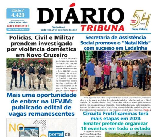 Diário Tribuna, 29 de Dezembro 2023, Teófilo Otoni – MG