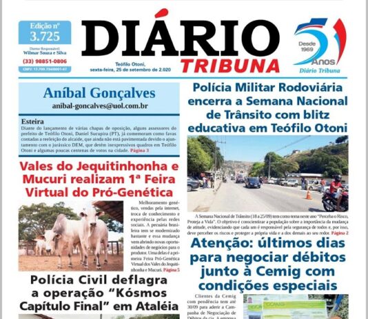 Diário Tribuna, 25 de Setembro 2020, Teófilo Otoni – MG