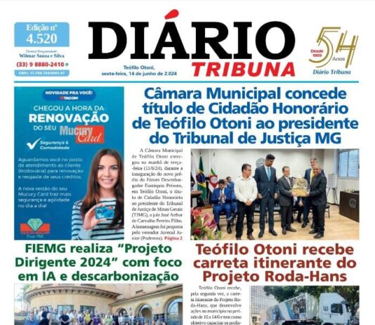 Diário Tribuna, 14 de Junho de 2024, Teófilo Otoni – MG