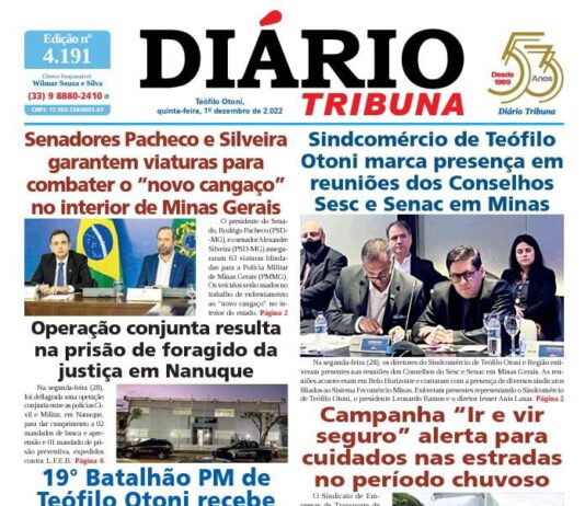 Diário Tribuna, 1º de Dezembro 2022, Teófilo Otoni – MG