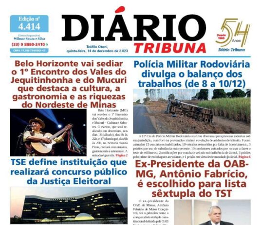 Diário Tribuna, 14 de Dezembro 2023, Teófilo Otoni – MG