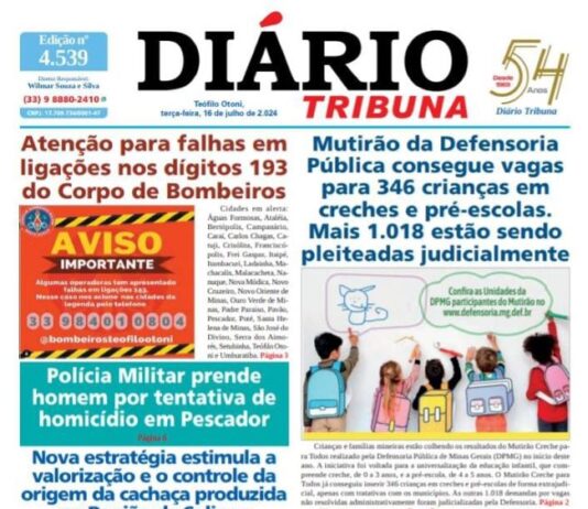 Diário Tribuna, 16 de Julho de 2024, Teófilo Otoni – MG