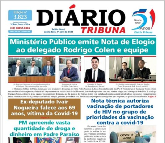 Diário Tribuna, 1º de Abril 2021, Teófilo Otoni – MG