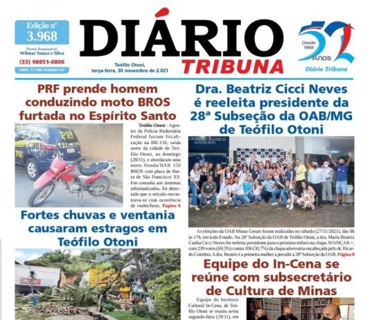Diário Tribuna, 30 de Novembro 2021, Teófilo Otoni – MG