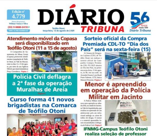 Diário Tribuna, 12 de Agosto de 2025, Teófilo Otoni – MG
