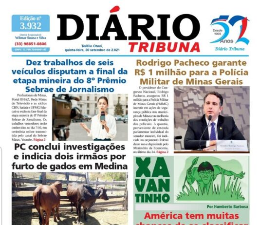 Diário Tribuna, 30 de Setembro 2021, Teófilo Otoni – MG