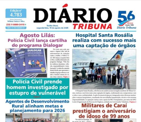 Diário Tribuna, 18 de Agosto de 2025, Teófilo Otoni – MG