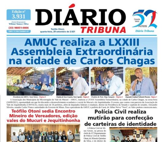 Diário Tribuna, 29 de Setembro 2021, Teófilo Otoni – MG