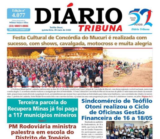 Diário Tribuna, 26 de Maio 2022, Teófilo Otoni – MG
