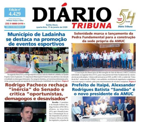 Diário Tribuna, 17 de Janeiro 2024, Teófilo Otoni – MG