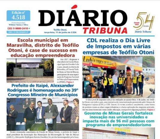 Diário Tribuna, 11 de Junho de 2024, Teófilo Otoni – MG