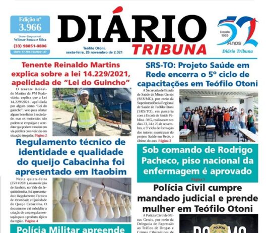 Diário Tribuna, 26 de Novembro 2021, Teófilo Otoni – MG