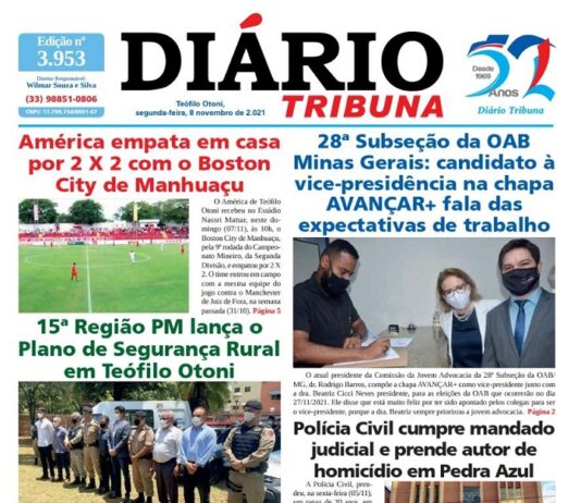 Diário Tribuna, 08 de Novembro 2021, Teófilo Otoni – MG