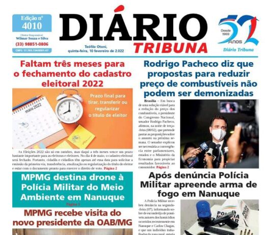 Diário Tribuna, 10 de Fevereiro 2022, Teófilo Otoni – MG