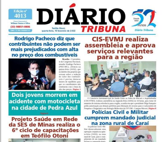 Diário Tribuna, 16 de Fevereiro 2022, Teófilo Otoni – MG